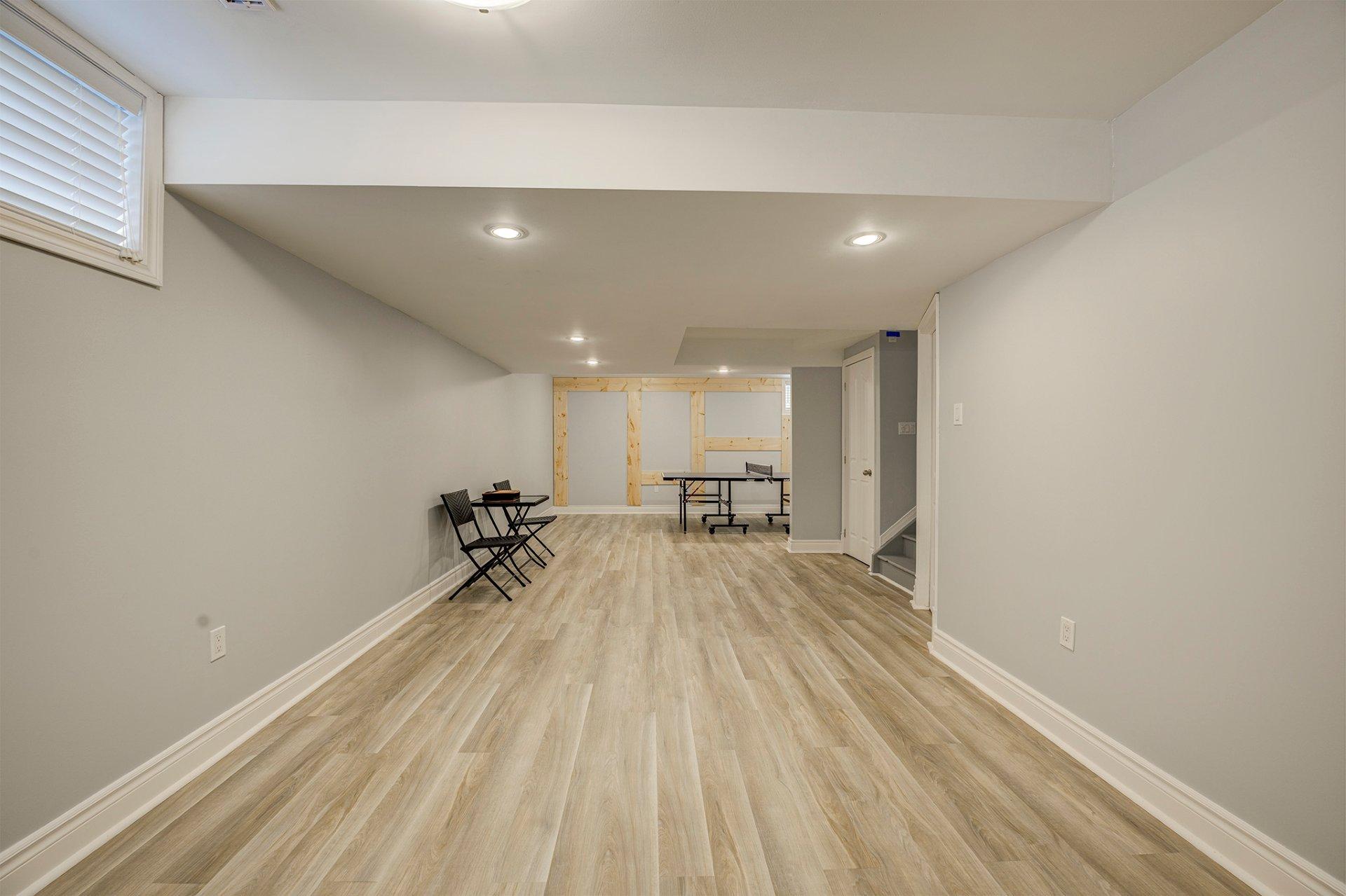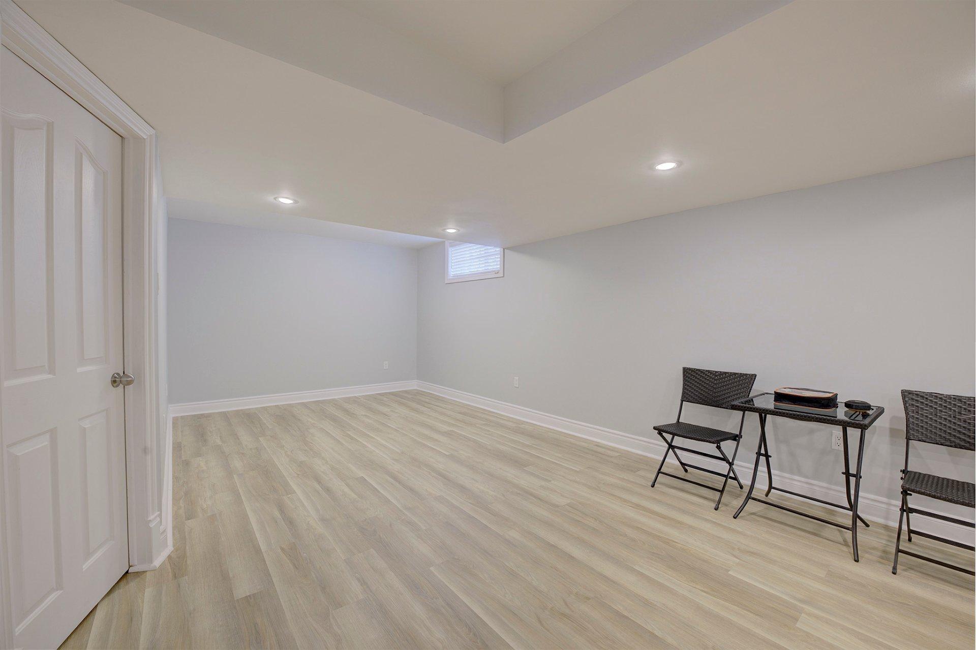| Sous-sol polyvalent : Le vaste sous-sol représente une toile blanche. Que vous souhaitiez y aménager une salle de cinéma maison, une salle de sport, une quatrième chambre ou un bureau pour le télétravail, les possibilités sont infinies. |