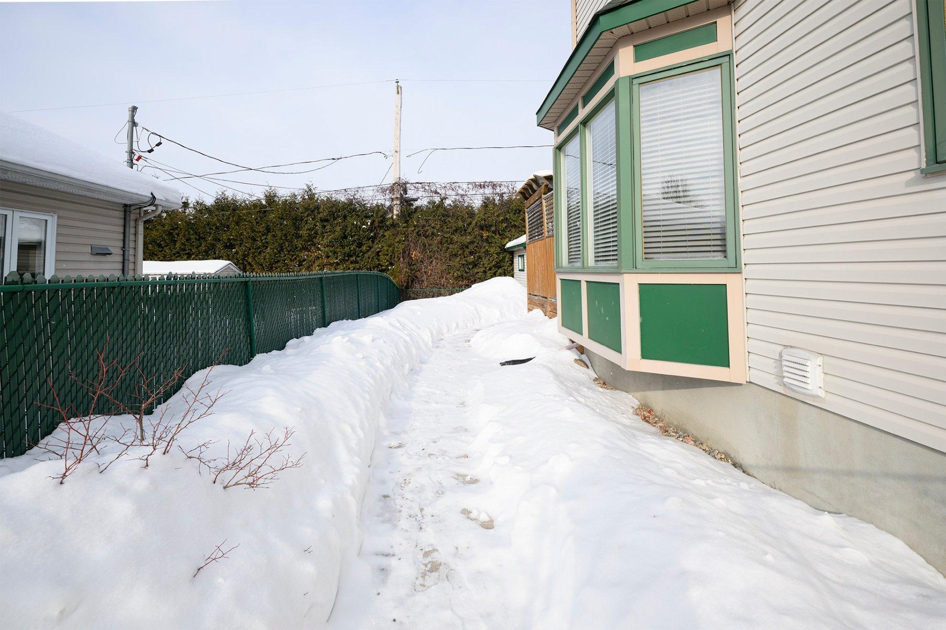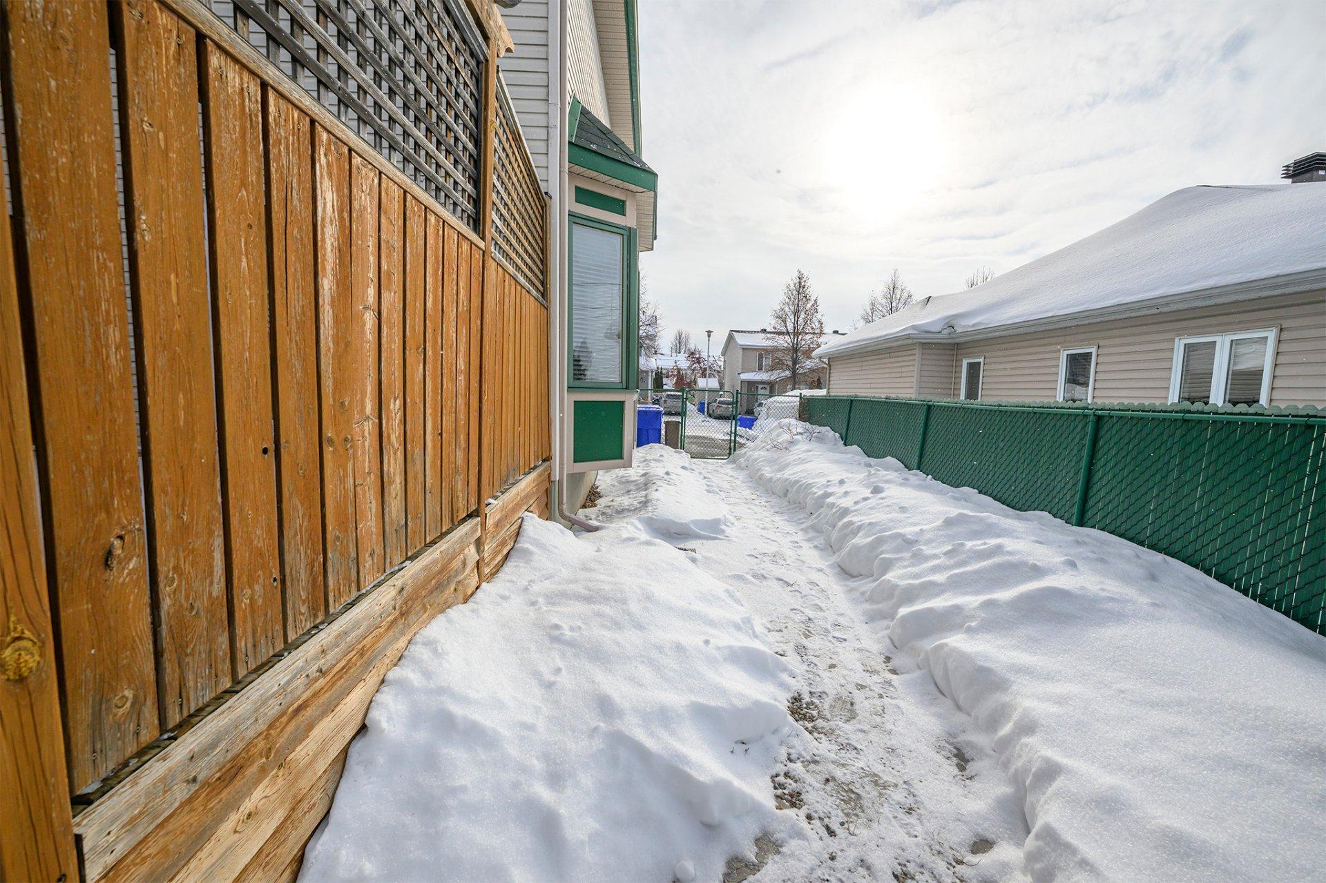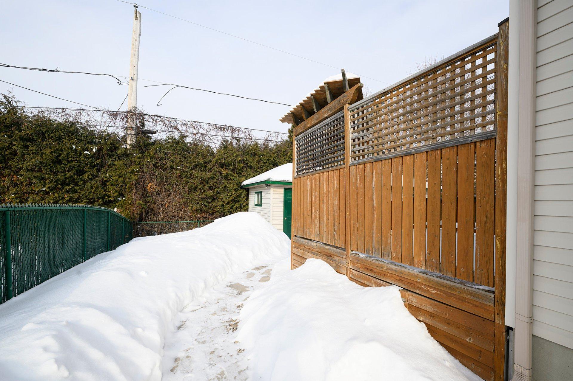 | La Cour : Un terrain généreux et privé, rare pour un semi-détaché. La cour est prête à accueillir vos projets : piscine, jardin urbain ou coin feu. La remise incluse offre un rangement pratique pour l'équipement de plein air. |