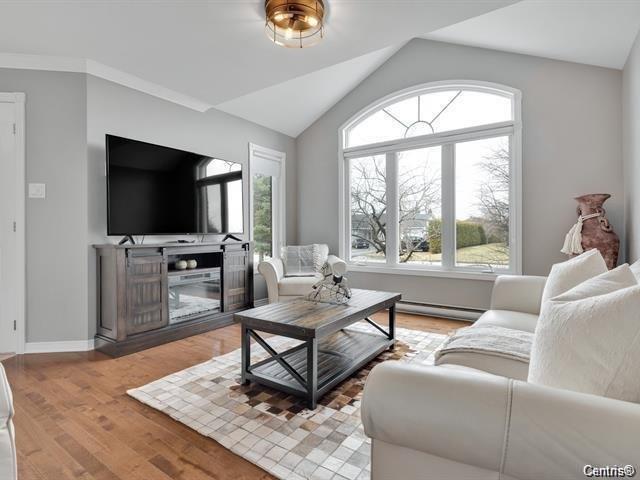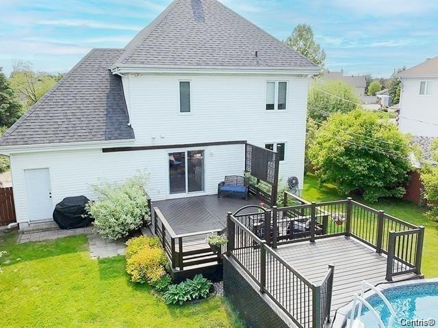 Découvrez cette superbe maison de 1 640 pi², située dans un quartier prestigieux près de tous les services. Avec ses toits en pente et son salon à plafond cathédrale, elle est soigneusement entretenue et offre un confort remarquable. La grande cour arrière clôturée, bordée de cèdres et d'arbres matures, assure une intimité totale. Profitez d'un aménagement paysager magnifique, d'une piscine chauffée et d'une vaste terrasse. Intérieur au goût du jour, prêt pour votre famille. À 5 minutes de l'autoroute.