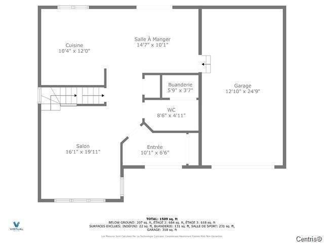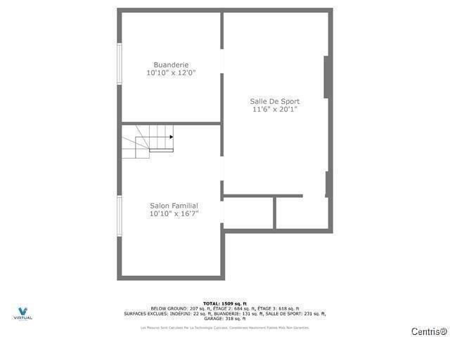 | Salon | Sous-sol | 11.7x11.9 P | Céramique |